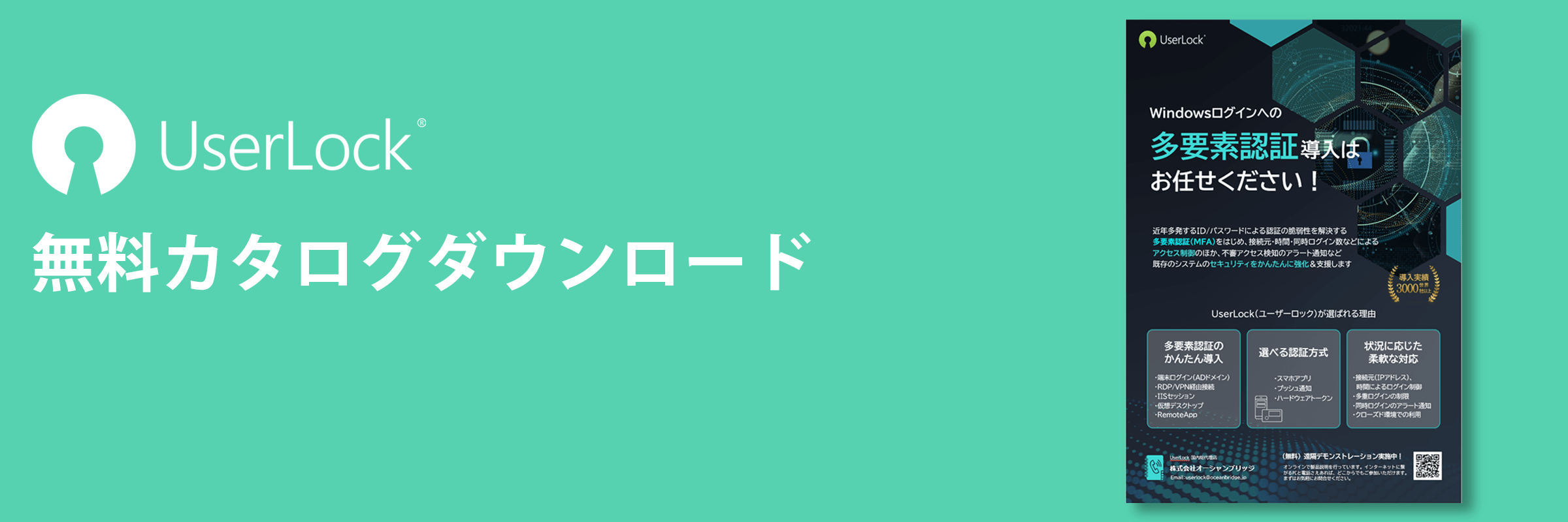 UserLockは多要素認証(MFA)をはじめ、接続元・利用時間・同時ログイン数に基づくアクセス制御や不審なアクセスを検知するアラート通知機能により、既存システムのセキュリティ強化をかんたんに支援します。